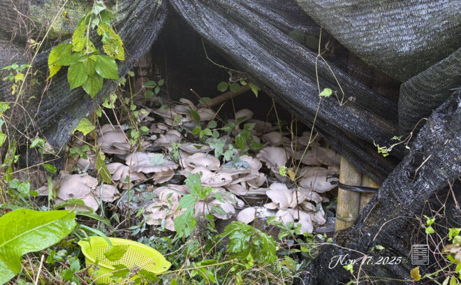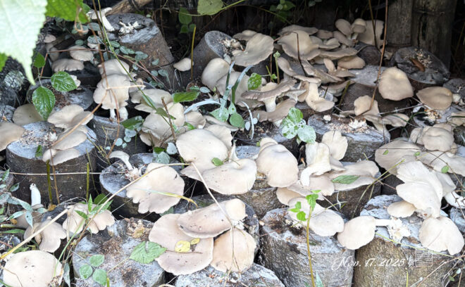 昨年の3月に駒打ちをしたヒラタケ(しめじ)がこんなことになってた。
